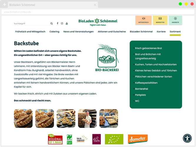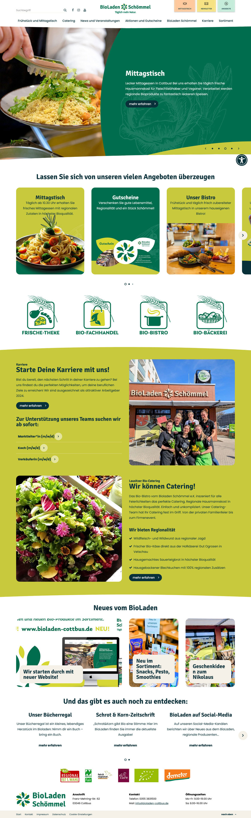 Ob du frisches Obst und Gemüse suchst, eine hervorragende Käsetheke, Brot aus unserer eigenen Backstube, ein gutes Mittagessen im Bistro oder regionale Spezialitäten – im Bioladen Schömmel findest du das Beste aus der Lausitz und weit darüber hinaus.