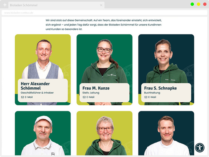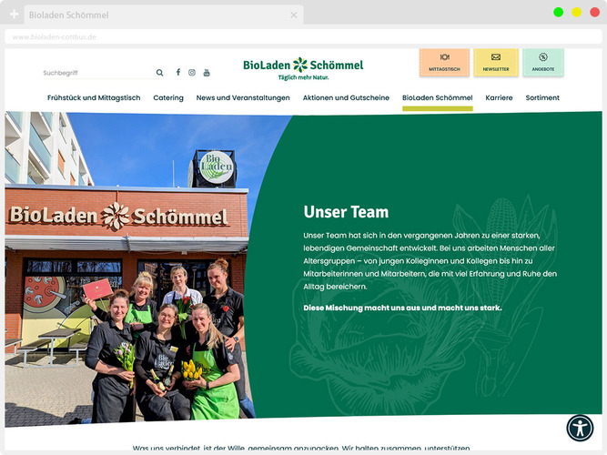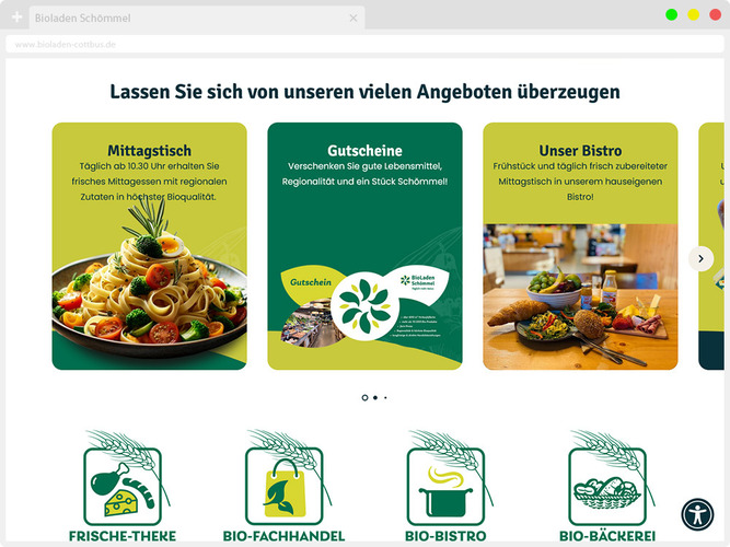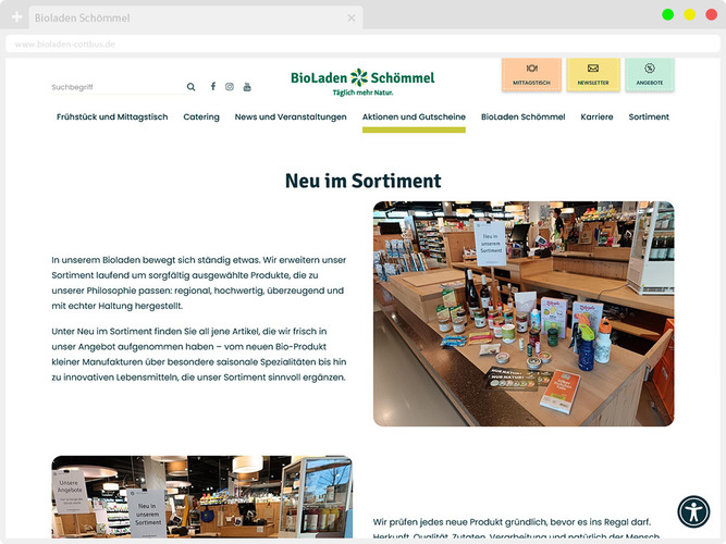 • Einbindung eines neuen, frischen, barrierefreien Webdesigns