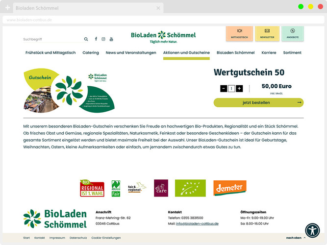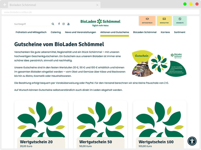 • Integration Newslettersystem und Onlineverkauf von Gutscheinen