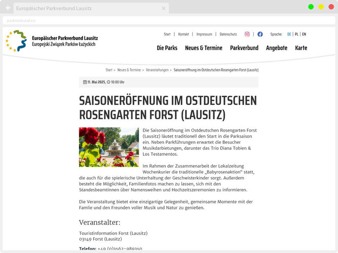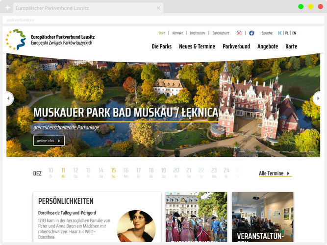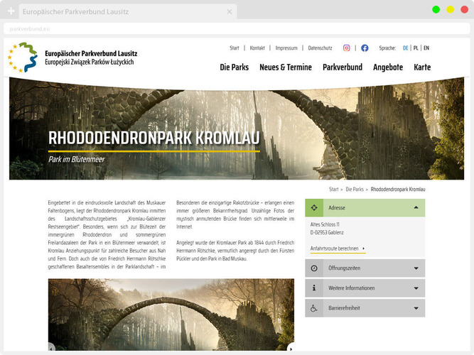 Die Internetseite des Parkverbundes www.parkverbund.eu lädt ein, diese Gartenlandschaften in atmosphärischen Bildern und eine Reihe von den praktischen Informationen zu den einzelnen Parks zu entdecken.