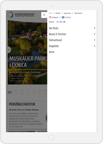 - umfangreiche Überarbeitung und Ausbau der Parkverbund-Website in responsivem Webdesign