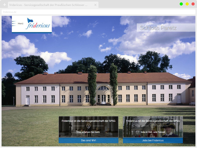 Fridericus (FSG) ist die Servicegesellschaft der Stiftung Preußische Schlösser und Gärten Berlin-Brandenburg (SPSG). Wir sind eine 100-prozentige Tochter der SPSG und sind darüber hinaus über einen Managementvertrag eng mit dem Dienstleistungsunternehmen Dussmann Beteiligungs- und Managementgesellschaft mbH verbunden.