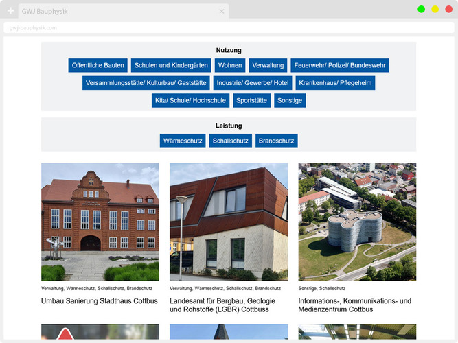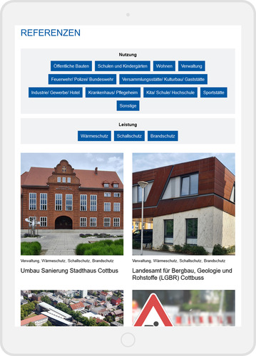 - Referenzen-Datenbank mit Filtern für Kategorien und Leistungen