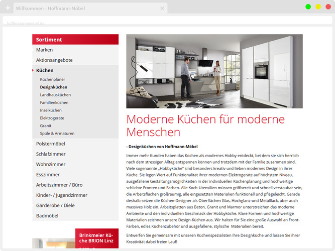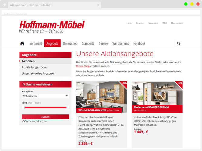 - umfangreiche Sortimentsdarstellung und Interlivingangebote