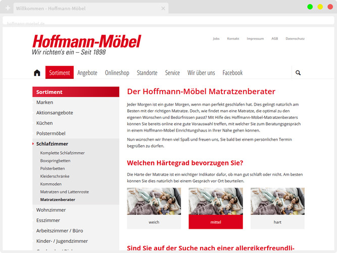 - Matratzenplaner, Onlineshop, Aktionsangebote mit Suchfilter