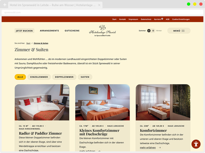 - umfangreicher barrierefreier Relaunch der Hotel-Website in responsivem Webdesign