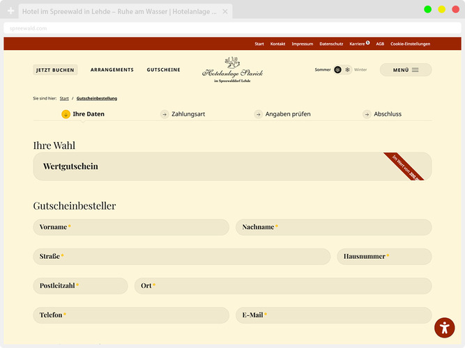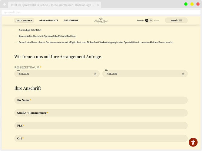 - Arrangements und Gutscheine mit Online-Buchungsformular