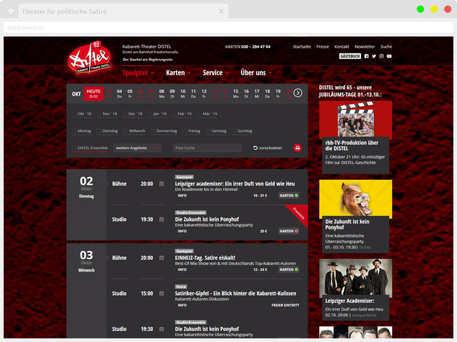 - umfangreiche Überarbeitung der Website für Deutschlands bekanntestes politisches Kabarett
