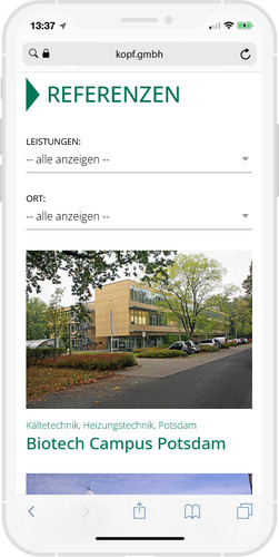 • Referenzübersicht mit Filtermöglichkeiten nach Leistungen und Ort