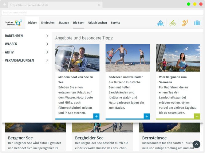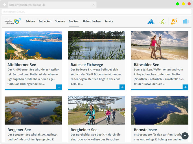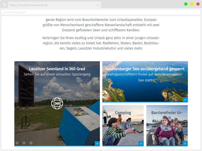 - komplette Überarbeitung des offiziellen Tourismusportals Lausitzer Seenland inkl. der Reiseregion Niederlausitz