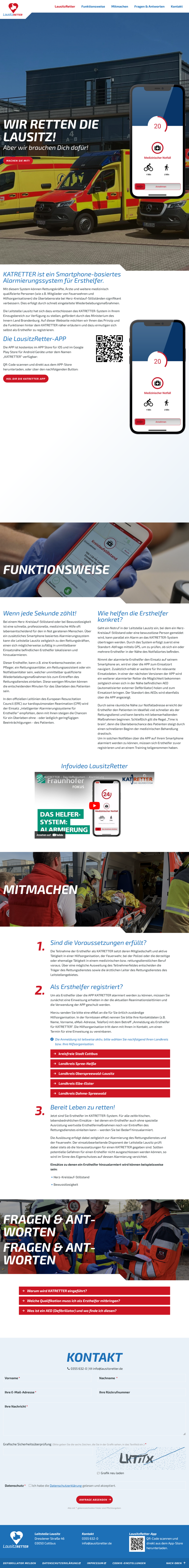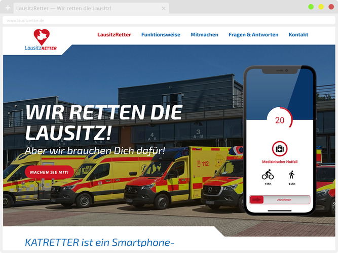 Die Leitstelle Lausitz hat sich dazu entschlossen das KATRETTER-System in Ihrem Einzugsbereich zur Verfügung zu stellen, gefördert durch das Ministerium des Innern Land Brandenburg. Auf dieser Webseite möchten wir Ihnen das Prinzip und die Funktionen hinter dem KATRETTER näher erläutern und dazu ermutigen sich selbst als Ersthelfer zu registrieren.