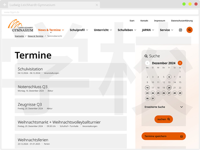 • Einbinden des neuen Schullogogs, Schulfarben und japanischer Schriftzeichen