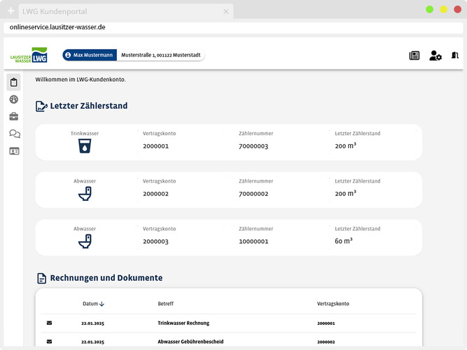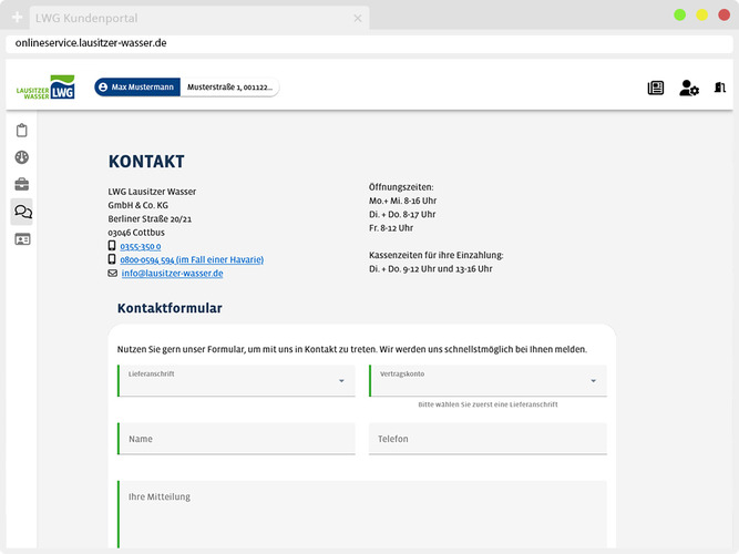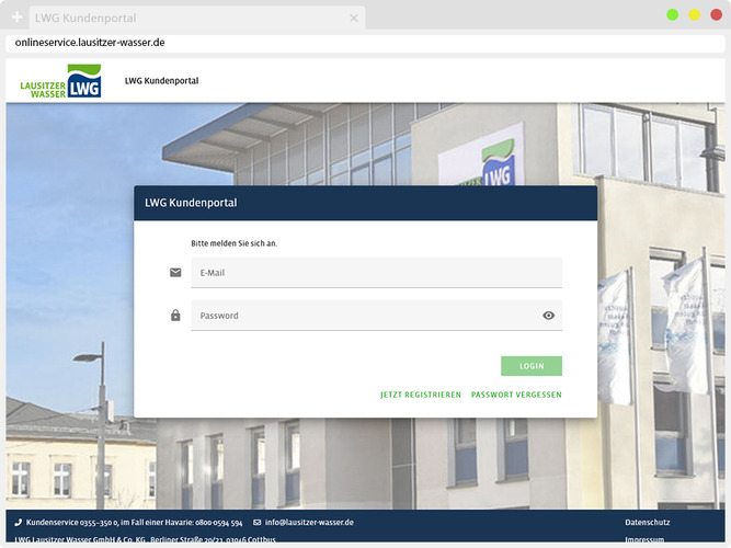 Mit dem neuen Kundenportal können alle Kunden der LWG Lausitzer Wassergesellschaft mbH ihre persönlichen Daten ganz einfach und bequem von zu Hause aus verwalten. Mit dem neuen Onlineservice behalten die Kunden den Überblick über ihre Vertrags- und Verbrauchsdaten und können verschiedene Anliegen direkt online erledigen: