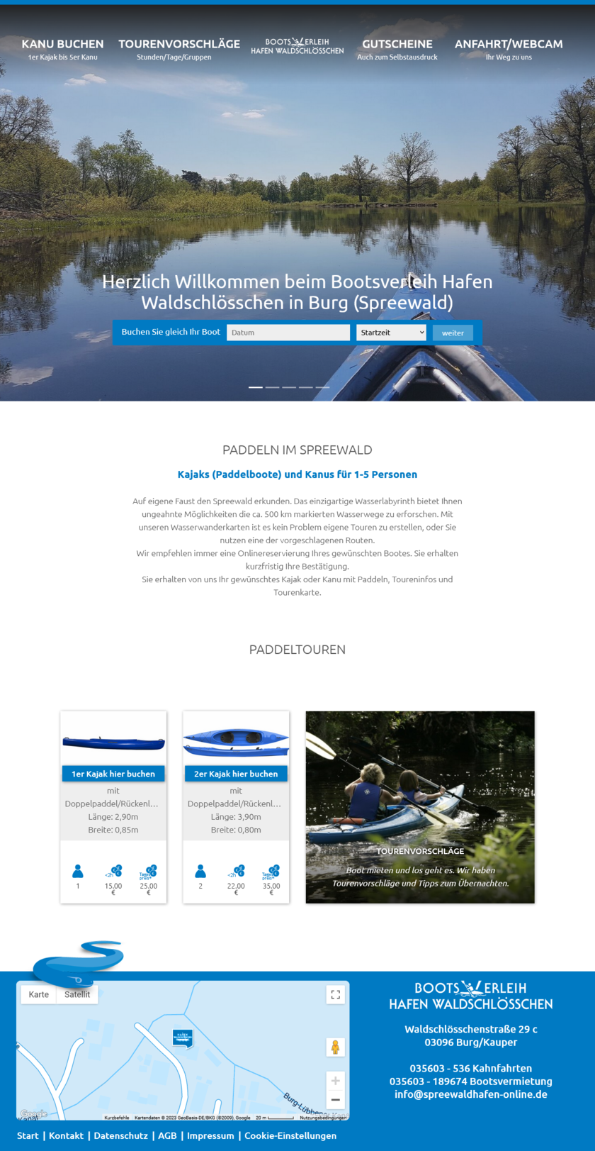 - mit Online-Buchungssystem für Kanus und Paddelboote