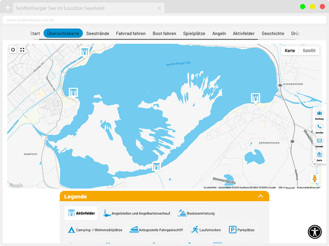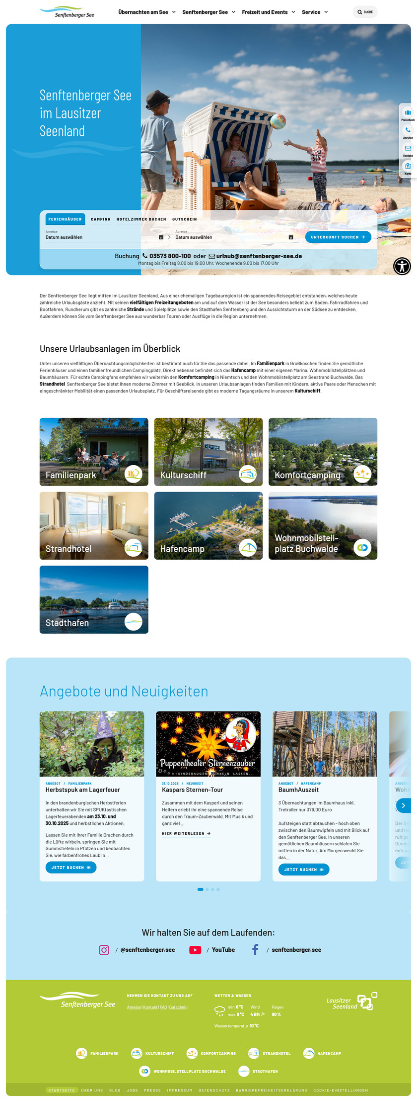 Der Senftenberger See liegt mitten im Lausitzer Seenland. Aus einer ehemaligen Tagebauregion ist ein spannendes Reisegebiet entstanden, welches heute zahlreiche Urlaubsgäste anzieht. Mit seinen vielfältigen Freizeitangeboten am und auf dem Wasser ist der See besonders beliebt zum Baden, Fahrradfahren und Bootfahren. Rundherum gibt es zahlreiche Strände und Spielplätze sowie den Stadthafen Senftenberg und den Aussichtsturm an der Südsee zu entdecken. Außerdem können Sie vom Senftenberger See aus wunderbar Touren oder Ausflüge in die Region unternehmen.
