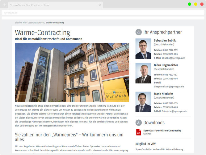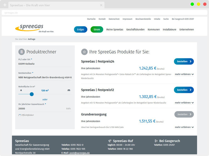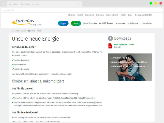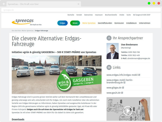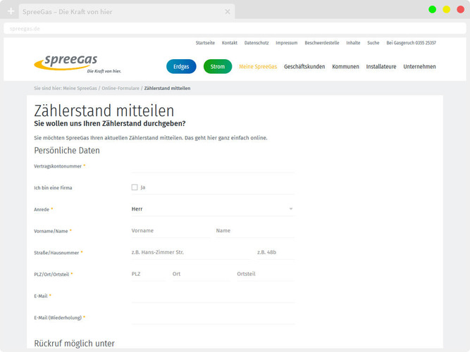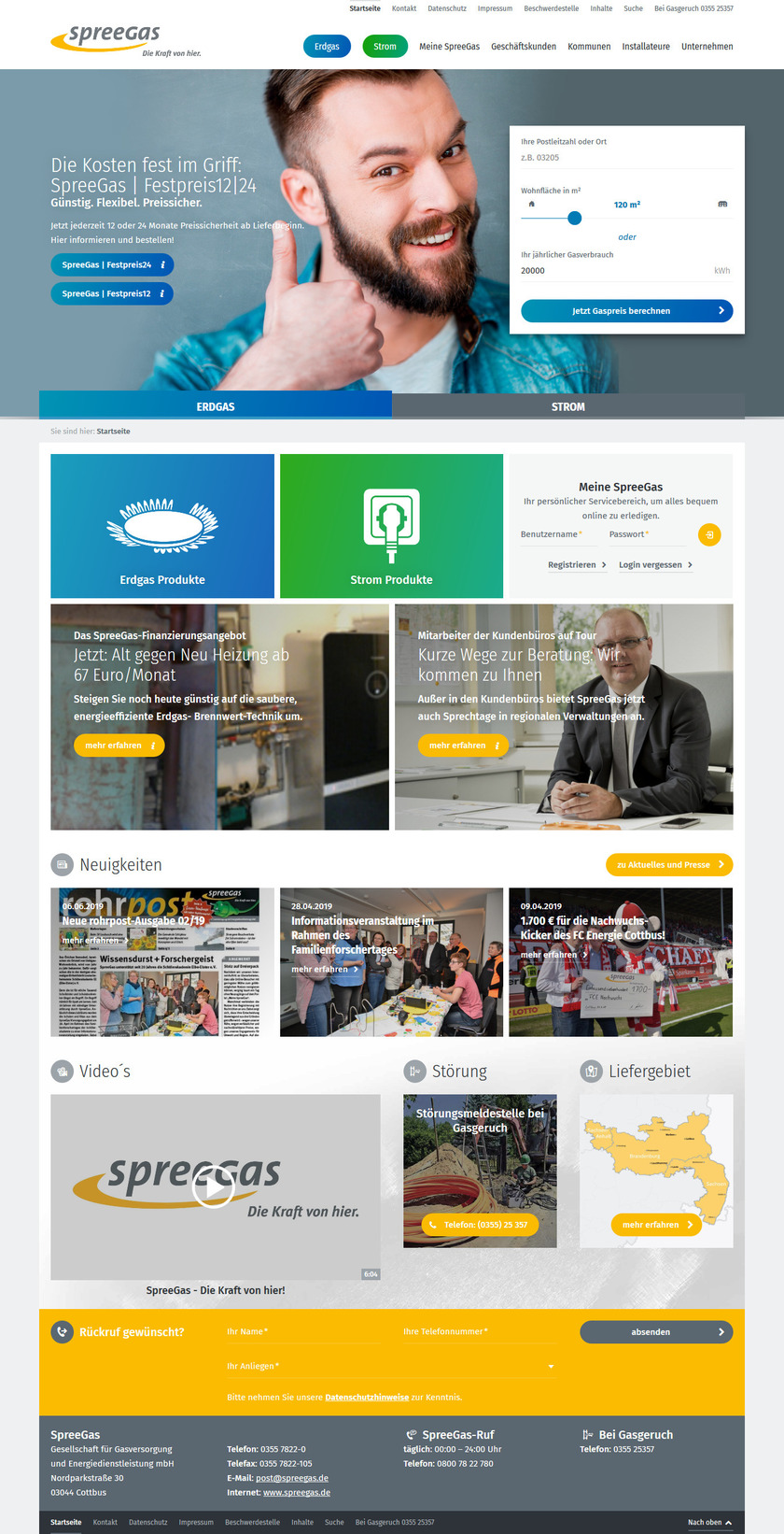 - Servicebereich "Meine SpreeGas" mit Onlineportal, Formularservice, Förderhinweisen etc.