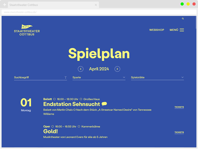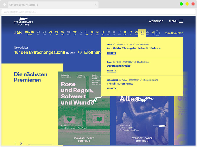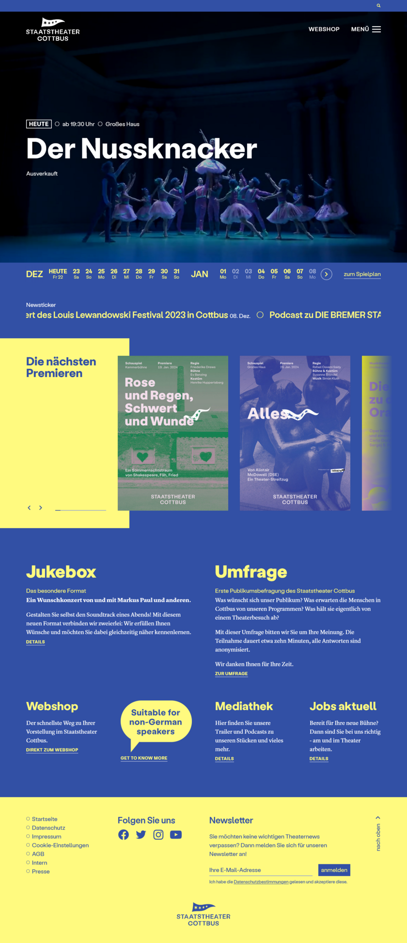 - Komplettüberarbeitung der Theater-Website im Rahmen einer öffentlichen Ausschreibung