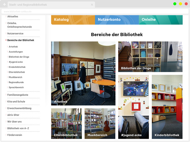- Komplettüberarbeitung der Website der Stadt- und Regionalbibliothek Cottbus