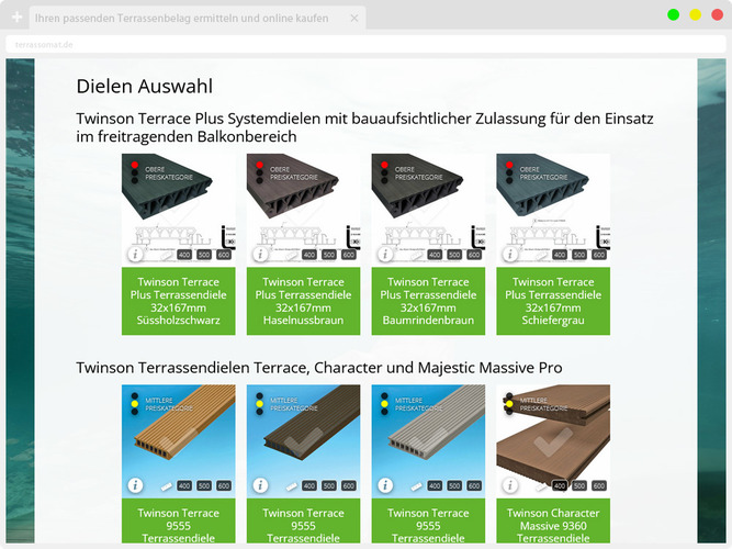 - Entwicklung einer Website mit Konfigurator für Terrassendielen aus Holz und WPC