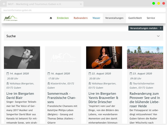 • komplette Überarbeitung der Tourismuswebsite der Stadt Guben