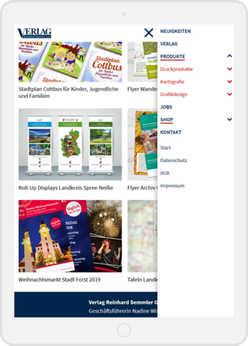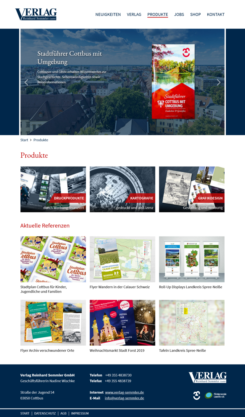 Bürgerinformationsbroschüren, touristische Journale, Broschüren zu allen relevanten gesellschaftlichen Themen für alle Zielgruppen, Mieterordner für Wohnungsverwaltungen, spezifische Kartografien, Stadtpläne und nicht zuletzt Atlanten für Landkreise gehören zum wesentlichen Produktionsprofil des Verlages.