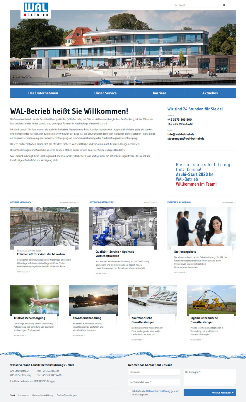 Die Wasserverband Lausitz Betriebsführungs GmbH (WAL-Betrieb), mit Sitz im südbrandenburgischen Senftenberg, ist mit mehr als 200 Mitarbeitern der führende Wasserdienstleister in der Lausitz und gefragter Partner für nachhaltige Wasserwirtschaft.