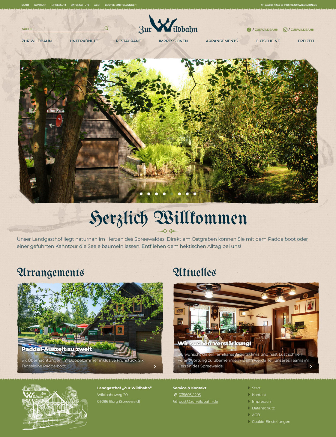 Unser Landgasthof "Zur Wildbahn" liegt naturnah im Herzen des Spreewaldes. Direkt am Ostgraben können Sie mit dem Paddelboot oder einer geführten Kahntour die Seele baumeln lassen. Entfliehen dem hektischen Alltag bei uns!